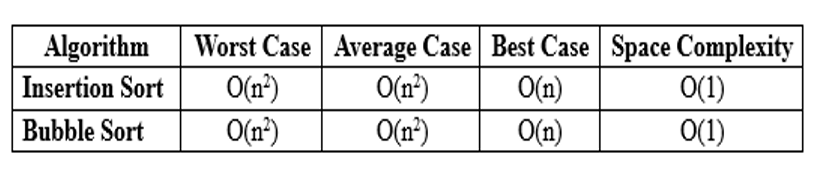 Worst Case: In the worst case, the input array is in descending order, and the algorithm performs a maximum of n(n-1) comparisons. The algorithm performs n-1 iterations, and each iteration involves a maximum of n-1 comparisons. The worst-case and average-case complexity is O(n²).
