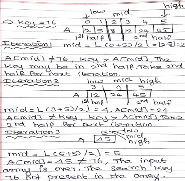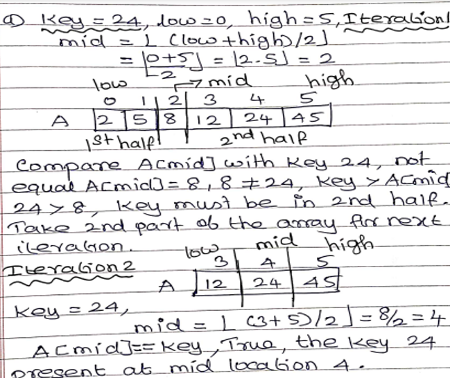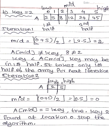 key == A[mid]then the key is found at locationmid. Terminate the algorithm. - b) Else if