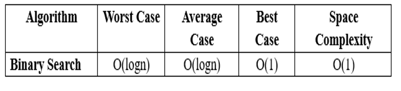 Best Case: If the search key is present in the first A[mid], the binary search algorithm performs only one comparison.